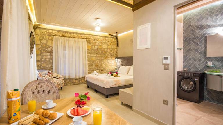 Im Stone Suites at Lefkada's Old Port können Sie selbst kochen und Ihre Mahlzeiten in der voll ausgestatteten Küche zubereiten. Alternativ finden Sie in der Nähe des Hotels eine Vielzahl von Restaurants und Cafés, in denen Sie lokale und internationale Küche genießen können.