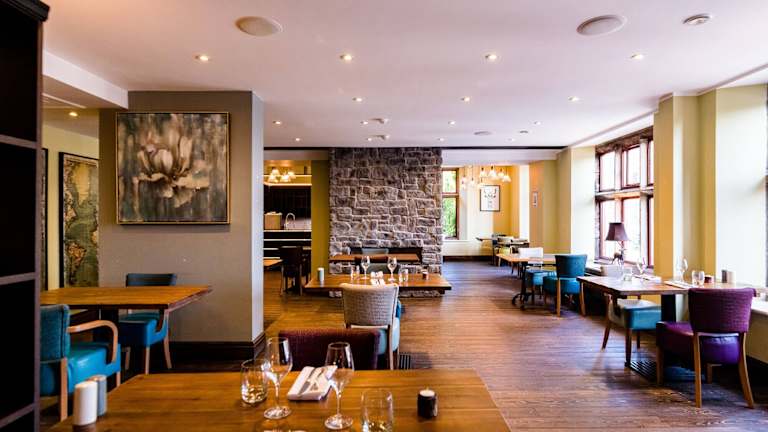 Das Stonecross Manor Hotel bietet verschiedene gastronomische Einrichtungen, darunter ein Restaurant mit Kinderhochstühlen, einen Speisesaal, einen Frühstückssaal und eine Bar. Sie können zwischen Übernachtung inklusive Frühstück und Halbpension wählen. Das Frühstück wird täglich als Buffet serviert. Das Mittagessen und das Abendessen werden à la carte oder als Menü angeboten.