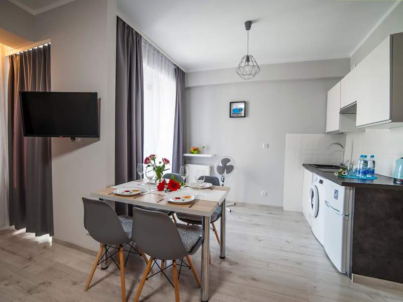 Das STOP Apartment bietet eine voll ausgestattete Küche, in der Sie Ihre eigenen Mahlzeiten zubereiten können. Alternativ gibt es in der Umgebung verschiedene Restaurants und Cafés, in denen Sie lokale Spezialitäten probieren können.