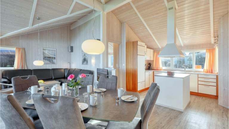 Die gut ausgestattete Küche des Ferienhauses umfasst einen Kühlschrank und einen Geschirrspüler, was eine Selbstversorgung ermöglicht. Es sind jedoch keine spezifischen Informationen über gastronomische Einrichtungen vorhanden.