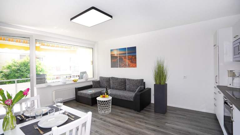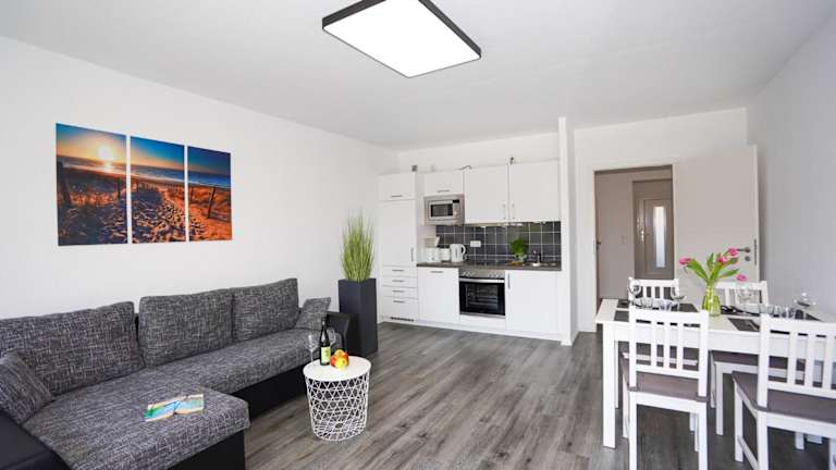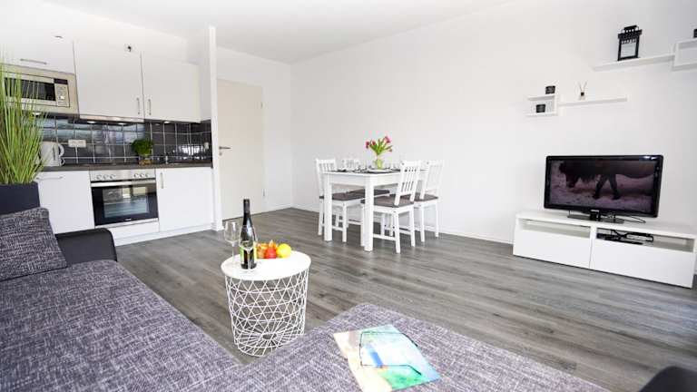 Die Ferienwohnung bietet ein Schlafzimmer, ein Wohnzimmer sowie eine gut ausgestattete Küchenzeile mit Kühlschrank und Geschirrspüler. Handtücher und Bettwäsche können gegen Aufpreis bereitgestellt werden. Zudem sind Allergikerfreundliche Zimmer verfügbar.