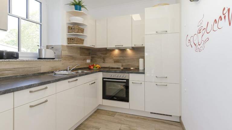 Die Ferienwohnung verfügt über eine voll ausgestattete Küche, in der ein Kühlschrank, Geschirrspüler, Waschmaschine, Ofen und Mikrowelle zur Verfügung stehen. Informationen zur Verpflegung in der Unterkunft liegen nicht vor.