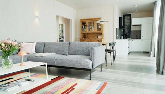 Die Ferienwohnung verfügt über eine voll ausgestattete Küchenzeile, die unter anderem mit einem Kühlschrank, Geschirrspüler, Waschmaschine, Ofen und Herdplatte ausgestattet ist. Die Unterkunft bietet die Möglichkeit, gegen Aufpreis Handtücher und Bettwäsche bereitzustellen.
