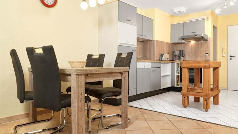 Im Hotel Strandglück können Sie Ihre Mahlzeiten selbst zubereiten, da jede Unterkunft über eine voll ausgestattete Küche verfügt. Alternativ können Sie die umliegenden Restaurants erkunden und regionale Spezialitäten probieren.