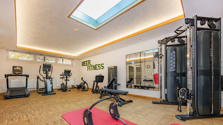 Unsere Sindbad-Therme mit Innenpool und verschiedenen Saunen (Biosauna, Dampf-und Infrarotsauna) wird ergänzt durch unseren beliebten ganzjährig beheizten und 30 °C warmen Sole-Außenpool mit Ruheoase und Soleverneblungsraum. In der 4. Etage laden Sie unsere Panorama-Sauna und der Ruheraum mit Ostseeblick zum Entspannen ein. Genießen Sie eine Auszeit beim Knistern des Kaminfeuers mit Blick auf die Seebrücke Heringsdorf. Ein großzügiger Fitnessraum mit modernen Geräten der Firma Matrix Health Johnson lässt das Workout zum Vergnügen werden. Unser Strandhotel-Vitalprogramm: Nordic-Walking, Wassergymnastik, Kneipplauf, Rückenschule, Yogakurse. Auf dem nahe gelegenen Golfplatz Baltic Hills erhalten Sie garantierte Startzeiten.