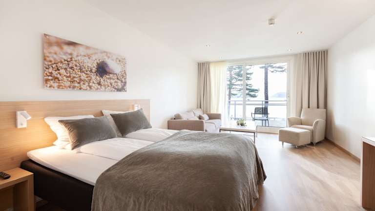 Die Zimmer im Rosfjord Strandhotel sind modern und frisch gestaltet. Sie verfügen über Annehmlichkeiten wie eine Minibar, einen Schreibtisch und Kabel-TV. Einige Zimmer bieten auch eine Terrasse oder einen Balkon mit Meerblick, so dass Sie die schöne Umgebung in vollen Zügen genießen können.