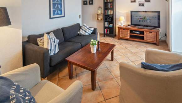 Das Apartment im Hotel Strandkorb befindet sich im Erdgeschoss und verfügt über 2 Schlafzimmer, die für eine komfortable Nachtruhe sorgen. Das Apartment ist mit einem TV ausgestattet, damit Sie Ihre Lieblingssendungen verfolgen können, und verfügt über eine voll ausgestattete Küche mit einem Kühlschrank und einem Backofen, in der Sie Ihre eigenen Mahlzeiten zubereiten können. Die gemütliche Einrichtung und der Blick auf den Garten sorgen für eine entspannte Atmosphäre, in der Sie sich wie zu Hause fühlen können.