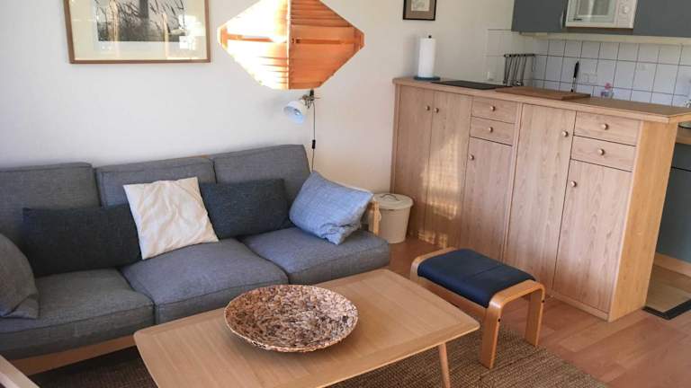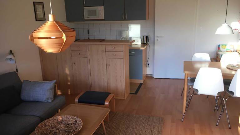 Die Ferienwohnung verfügt über 1 Schlafzimmer und eine Küchenzeile, die mit einem Ofen und einer Mikrowelle ausgestattet ist. Zudem bietet sie ein Badezimmer mit einer Dusche, einem Haartrockner und einer Waschmaschine.