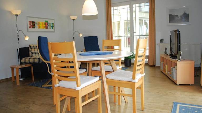 Das Apartment verfügt über eine Küchenzeile, die mit einem Geschirrspüler ausgestattet ist. So können Sie Ihre Mahlzeiten bequem zubereiten und den Abwasch problemlos erledigen. Ein TV ist ebenfalls vorhanden, so dass Sie Ihre Lieblingssendungen oder Filme genießen können.