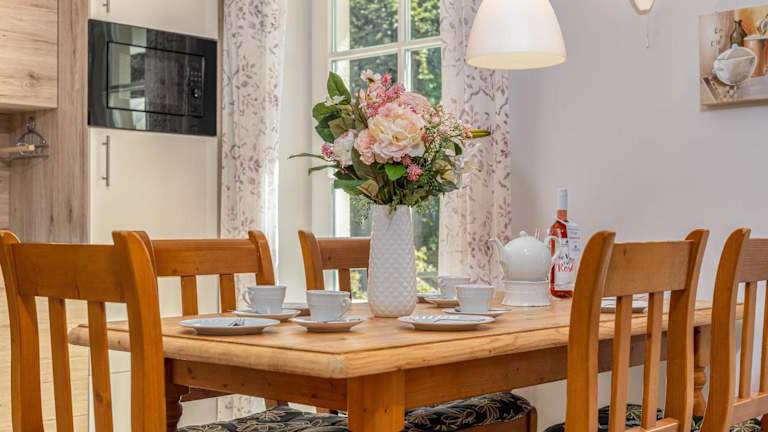 Die Ferienwohnung verfügt über zwei Schlafzimmer, ein Wohnzimmer, ein Badezimmer mit Dusche, einen Fernseher und eine gut ausgestattete Küche mit Kühlschrank und Geschirrspüler. Eine Terrasse mit Gartenblick und ein Garten sind ebenfalls vorhanden. Kostenlose Parkplätze stehen zur Verfügung. Bettwäsche und Handtücher sind nicht im Preis inbegriffen, können aber gegen Aufpreis gemietet werden.