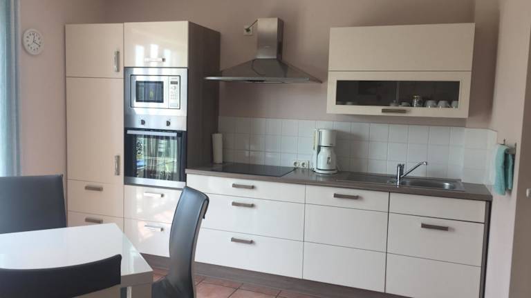 Die Ferienwohnung bietet ein Schlafzimmer, ein Wohnzimmer mit Flachbild-TV, eine gut ausgestattete Küche mit Kühlschrank und Geschirrspüler sowie ein Badezimmer mit Dusche. Handtücher und Bettwäsche können gegen Aufpreis bereitgestellt werden.