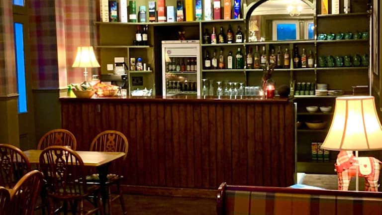 Jeden Morgen serviert die Strathardle Lodge ein köstliches englisches oder schottisches Frühstück, das die Gäste auf einen energiegeladenen Tag vorbereitet. Die Lodge bietet auch eine gut bestückte Selbstbedienungsbar, in der die Gäste eine Auswahl an Getränken genießen können.
