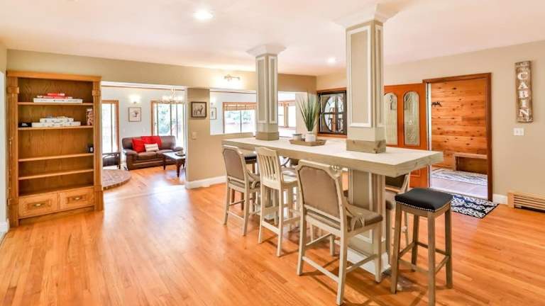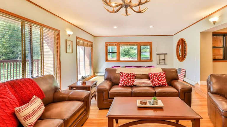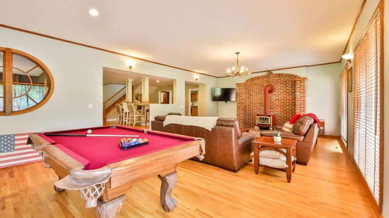 Das Stream-Side Atrium Home mit Seitenzimmern und einem Billardtisch bietet eine großzügige Unterkunft in Form eines Ferienhauses. Es verfügt über einen Garten und eine Veranda oder ein Patio, wo Gäste entspannen können. Weiterhin steht kostenloses WLAN zur Verfügung.