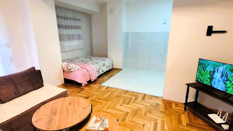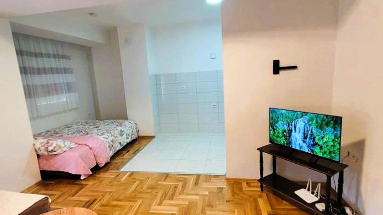 Das Cozy Studio Apartment in Strumica bietet eine gemütliche Unterkunft in der Nähe des Stadtparks. Mit einer Terrasse und kostenfreiem WLAN ist dieses Apartment ideal für Reisende, die eine komfortable und moderne Unterkunft suchen. Das Apartment verfügt über ein Schlafzimmer mit Klimaanlage und eine voll ausgestattete Küche. Kostenlose Parkplätze stehen ebenfalls zur Verfügung. Der internationale Flughafen Skopje ist etwa 123 km entfernt.