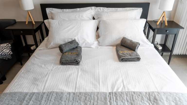 Die Ferienwohnung verfügt über 1 Schlafzimmer und 1 Badezimmer. Sie ist mit Bettwäsche, Handtüchern, einem Flachbild-TV, einem Essbereich und einer voll ausgestatteten Küche ausgestattet.