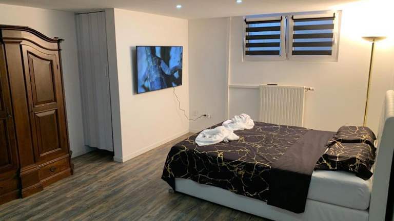 Die Unterkunft Studio 45m2 très calme liegt in Village-Neuf, etwa 6,9 km von Weissen und Blauem Haus entfernt. Sie ist 7 km vom Marktplatz Basel und in der Nähe von weiteren wichtigen Sehenswürdigkeiten wie dem Kunstmuseum Basel (8,6 km) und dem Zoologischen Garten (8,7 km) gelegen. Die Nähe zum Basel Badischer Bahnhof (7,3 km) und zur Messe Basel (7,8 km) ermöglicht eine gute Anbindung.