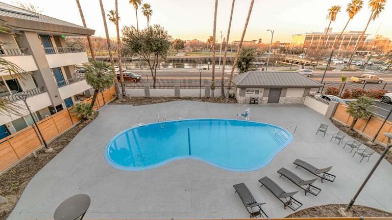 Das Hotel befindet sich in Stockton, Kalifornien, in der Nähe des Flughafens Stockton (SCK) und ist etwa 1,6 km vom nächsten Bahnhof entfernt. Es liegt weniger als 4,7 km von der University of the Pacific und 33 km vom Newport Casino entfernt.