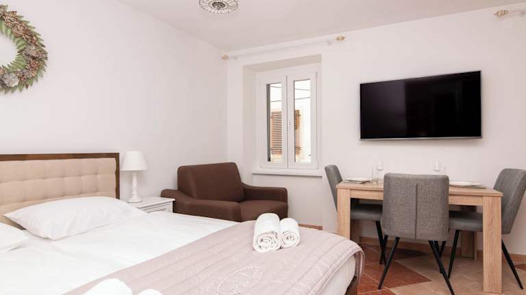 Studio Anja - Piran ist eine Ferienwohnung, die mit kostenlosem WLAN und Stadtblick ausgestattet ist. Die Check-in-Zeiten liegen zwischen 15:00 und 20:00 Uhr, während der Check-out zwischen 08:00 und 10:00 Uhr erfolgt. Haustiere sind in der Unterkunft nicht erlaubt, und Junggesellen-/Junggesellinnenabschiede sind ebenfalls untersagt. Die Unterkunft ist Nichtraucherzone.