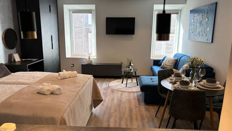 Das Studio Apartman Versi Old Town ist eine gut ausgestattete Ferienwohnung, die verschiedene Annehmlichkeiten bietet, darunter kostenloses WLAN und Klimaanlage. Die Unterkunft ist rauchfrei und sorgt für Hygiene und Sicherheit durch die Anwendung von Reinigungsmitteln, die gegen Coronavirus wirksam sind. Kontaktloser Check-in und -out sind verfügbar. Es ist eine Anlage für Erwachsene; das Mindestalter für den Check-in beträgt 18 Jahre. Haustiere sind nicht gestattet.