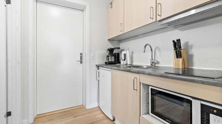Das Studio Apartment verfügt über ein Wohnzimmer sowie eine voll ausgestattete Küche mit einem Kühlschrank und einer Herdplatte. Ein Flachbild-TV sorgt für Unterhaltung im Zimmer. Die klimatisierte Unterkunft bietet zudem eine Heizungsanlage.