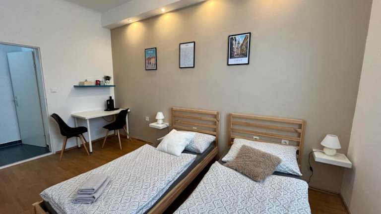 Das Studio-Apartment bietet moderne Übernachtungsmöglichkeiten in zentraler Lage und ist mit kostenlosem WLAN sowie einem Flachbild-TV ausgestattet. Die Einrichtung umfasst ein Schlafzimmer und eine Küche, die mit einem Kühlschrank und einer Herdplatte ausgestattet ist. Ein Badezimmer mit einer Dusche und einem Haartrockner vervollständigt die Ausstattung.