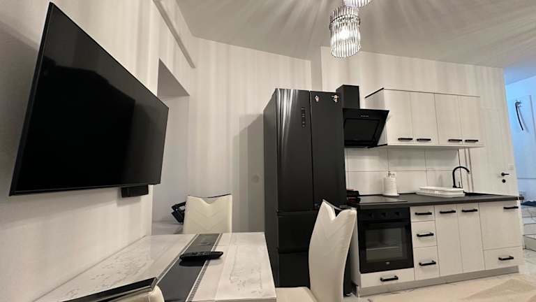 Das Apartment verfügt über ein Schlafzimmer, ein Badezimmer mit Dusche und ist mit einem Flachbild-TV mit Kabelkanälen sowie einer gut ausgestatteten Küche mit Kühlschrank und Ofen ausgestattet. Handtücher und Bettwäsche werden bereitgestellt.