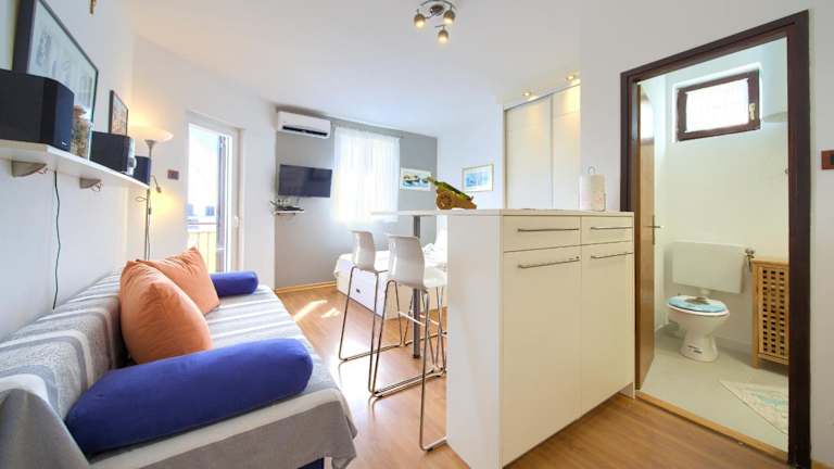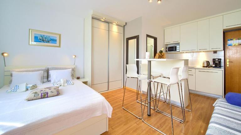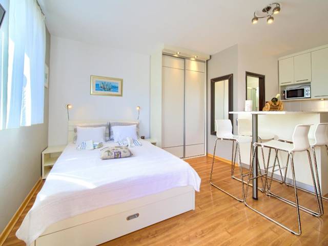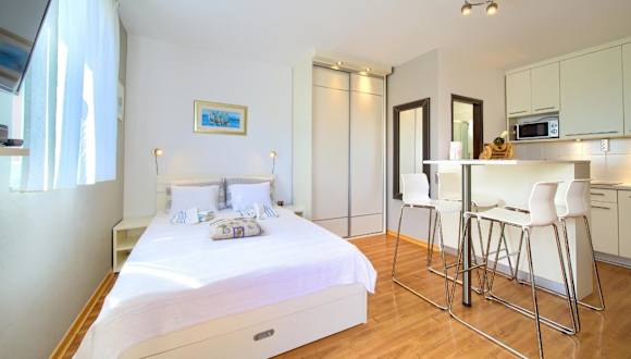 Studio Apartment Vesna bietet Übernachtungsmöglichkeiten mit kostenlosem WLAN und Klimaanlage. Die Unterkunft zeichnet sich durch einen Garten mit Grillmöglichkeiten aus und verfügt über eine Terrasse mit Meerblick.