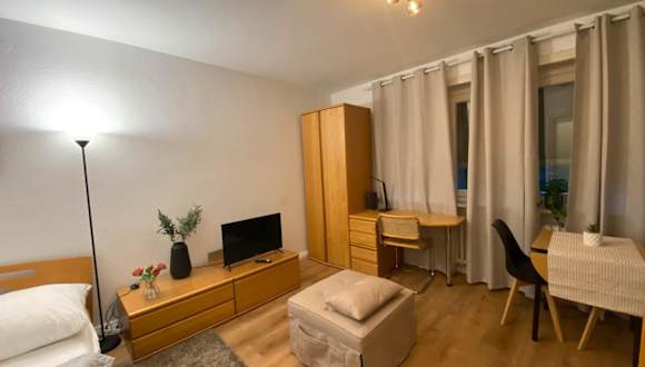 Das Studio-Apartment bietet eine moderne Unterkunft mit kostenlosen WLAN-Zugang und Stadtblick. Die minimalistisch eingerichtete Ferienwohnung ist mit Kabel-TV ausgestattet und bietet Zugang zu verschiedenen interessanten Orten in der Nähe, wie dem Frankfurter Hauptbahnhof, dem English Theatre und dem Goethe-Haus.