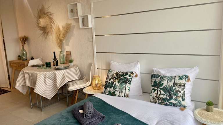 Das Studio Blue Horizon vue mer bietet Übernachtungsmöglichkeiten mit Meerblick sowie Zugang zu einer Terrasse und einem Balkon. Es handelt sich um eine Ferienwohnung mit einem saisonalen Außenpool und kostenlosem Privatparkplatz.
