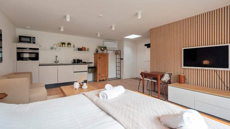 In der Ferienwohnung steht ein Schlafzimmer zur Verfügung, das mit einer voll ausgestatteten Küchenzeile, einem Kühlschrank, einem Ofen und einem Badezimmer mit Dusche und Haartrockner ausgestattet ist. Ein Flachbild-TV ist ebenfalls vorhanden. Die Unterkunft bietet kostenfreies WLAN und Privatparkplätze.
