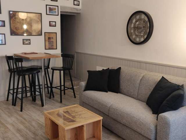 Die Wohnung umfasst ein Schlafzimmer, ein Wohnzimmer, eine voll ausgestattete Küche mit Kühlschrank und Kaffeemaschine sowie ein Badezimmer mit Dusche und Haartrockner. Handtücher und Bettwäsche werden zur Verfügung gestellt. Die Unterkunft bietet Nichtraucherzimmer und die Reinigung erfolgt gemäß den Richtlinien der örtlichen Behörden.