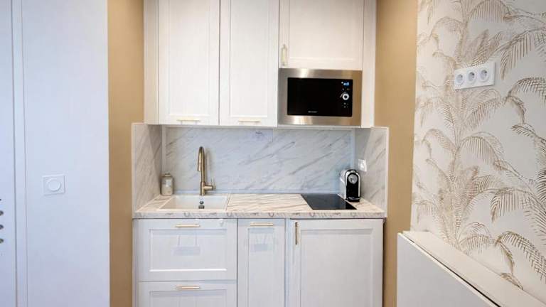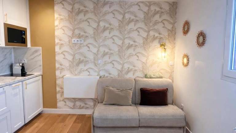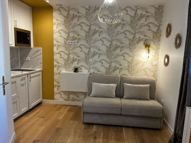 Das Studio Cocooning bietet ein gemütliches Schlafzimmer mit komfortablen Betten für eine erholsame Nachtruhe. Das Apartment verfügt über einen Flachbild-Sat-TV, der für Unterhaltung sorgt. Die voll ausgestattete Küche mit Kühlschrank und Mikrowelle ermöglicht es Ihnen, Ihre eigenen Mahlzeiten zuzubereiten. Das moderne Badezimmer ist mit einer Dusche ausgestattet. Handtücher und Bettwäsche werden gestellt, um Ihnen einen angenehmen Aufenthalt zu ermöglichen.