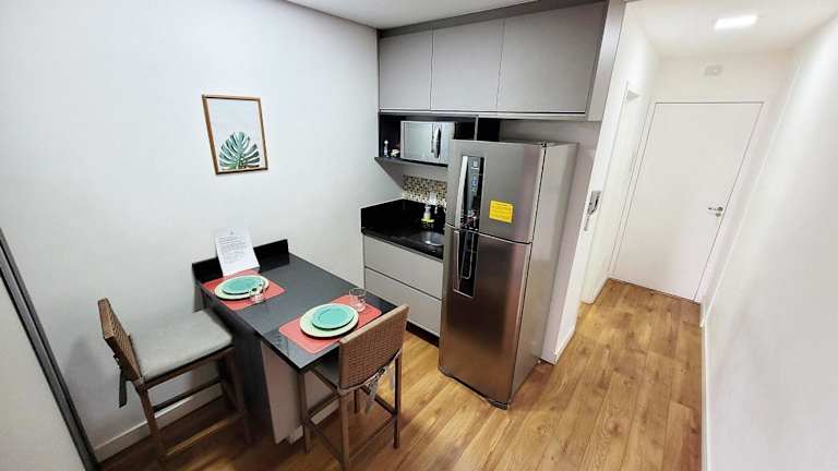 Studio Completo Cotia Granja Vianna 417 ist eine Ferienwohnung, die Gästen eine komfortable und unabhängige Unterkunft bietet. Die Einrichtung umfasst einen Garten, eine Terrasse und eine Gemeinschaftsküche. Die klimatisierte Unterkunft ist modern gestaltet und bietet einen Privatparkplatz sowie kostenloses WLAN.