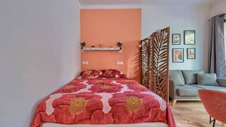 Das Studio umfasst ein Schlafzimmer, ein Badezimmer mit Dusche sowie eine gut ausgestattete Küche mit Kühlschrank und Geschirrspüler. Zur Ausstattung gehört ein Flachbild-TV mit Kabelkanälen. Zusätzlich sind WLAN und Klimaanlage verfügbar.