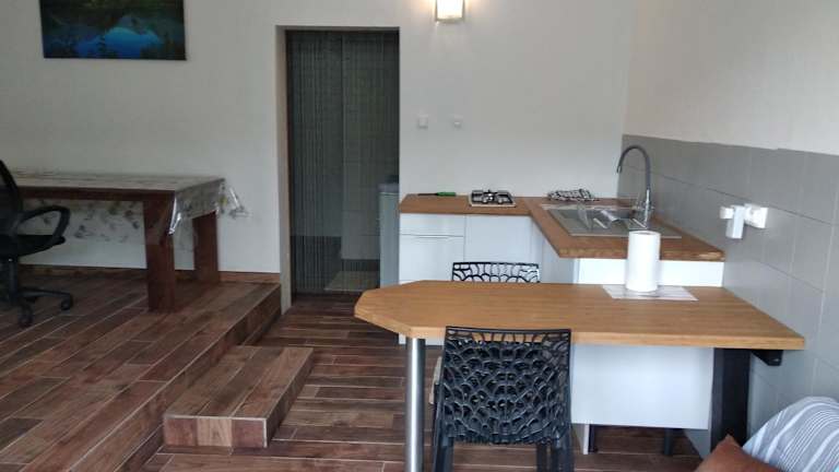 Das Studio-Apartment bietet ein gemütliches und komfortables Ambiente für Ihren Aufenthalt. Es verfügt über ein Schlafzimmer, einen Essbereich, eine voll ausgestattete Küche und ein Badezimmer. Die Terrasse bietet einen angenehmen Platz zum Entspannen und Genießen der frischen Luft. Kostenfreies WLAN steht Ihnen zur Verfügung, damit Sie mit Ihren Lieben in Kontakt bleiben können.