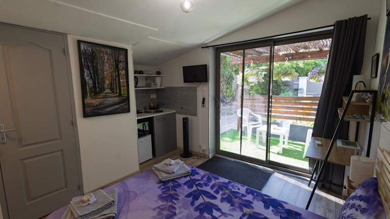 Das Privatzimmer ist mit einem Flachbild-TV, einer Küchenzeile mit Kühlschrank, Ofen und Mikrowelle ausgestattet. Die Unterkunft verfügt über eine Dusche, kostenlose Pflegeprodukte und einen Haartrockner. Es stehen Sonnenstühle/-liegen sowie Gartenmöbel zur Verfügung.