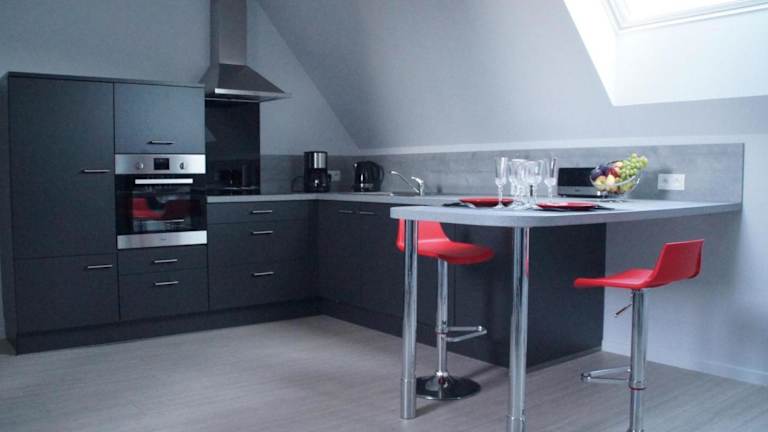 Die Unterkunft bietet eine gut ausgestattete Küche mit einem Kühlschrank und einem Geschirrspüler, die den Gästen die Möglichkeit gibt, eigene Mahlzeiten zuzubereiten. Es sind keine weiteren Verpflegungsmöglichkeiten beschrieben.