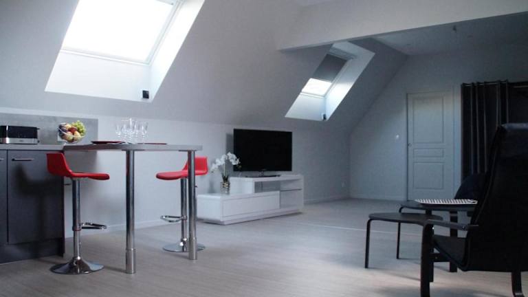 Das Studio de charme à la ferme offre eine charmante und ruhige Atmosphäre in einer ländlichen Umgebung. Die Ferienwohnung verfügt über eine Fläche von 50 m² und ist modern eingerichtet. Gästen stehen kostenloses WLAN zur Verfügung.