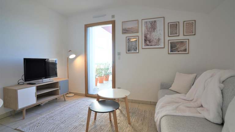 Die Ferienwohnung umfasst 1 Schlafzimmer und 1 Badezimmer. Zudem sind Bettwäsche und Handtücher vorhanden. Zur Ausstattung gehören ein Flachbild-TV mit Kabelkanälen, ein Essbereich sowie eine voll ausgestattete Küche. Eine Terrasse mit Stadtblick ist ebenfalls vorhanden.