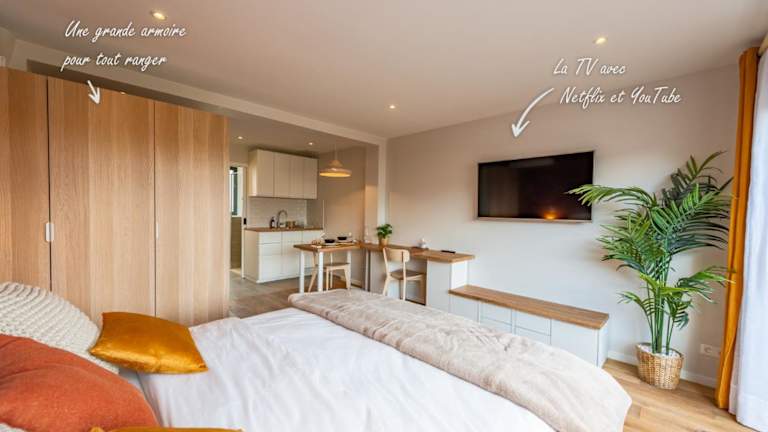 Studio Eiffel ist eine Ferienwohnung, die komfortabel eingerichtet ist und über ein Schlafzimmer sowie moderne Annehmlichkeiten verfügt. Die Unterkunft bietet Klimaanlage und kostenfreies WLAN in allen Bereichen. Gästen sind Handtücher und Bettwäsche verfügbar. Die Unterkunft hat eine Nichtraucherpolitik in allen öffentlichen und privaten Bereichen. Des Weiteren sind Junggesellen-/Junggesellinnenabschiede und ähnliche Feiern nicht gestattet.
