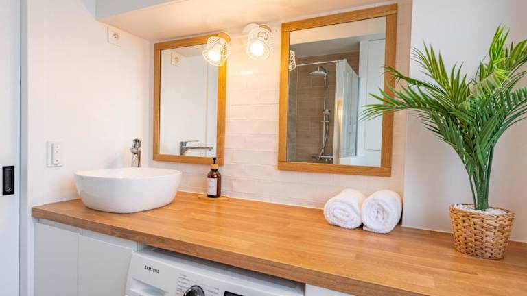Die Ferienwohnung beinhaltet ein Schlafzimmer und ist mit einem Flachbild-TV, einer Küche, einem Kühlschrank sowie einem Geschirrspüler ausgestattet. Die Unterkunft bietet zudem Klimaanlage und Heizung.