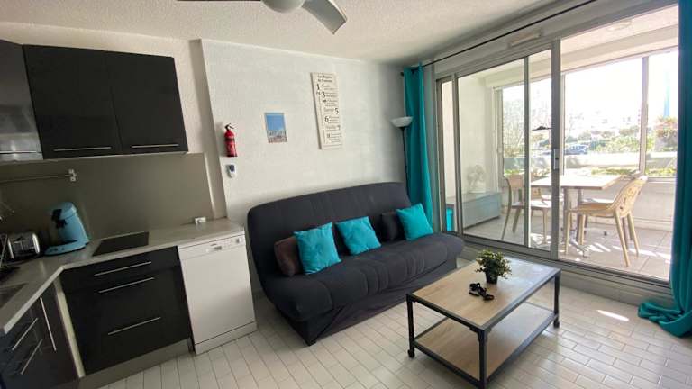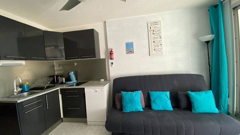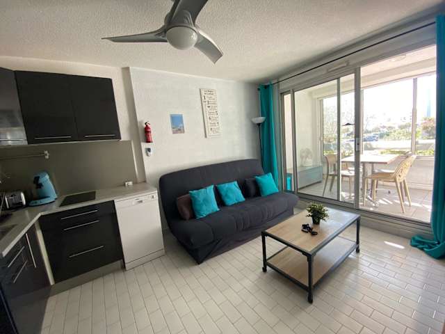 Das Studio-Apartment im Studio Grau du Roi Floralies II proche plage parking bietet alles, was Sie für einen angenehmen Aufenthalt benötigen. Es verfügt über ein Schlafzimmer, ein gemütliches Wohnzimmer mit einem Flachbild-TV und eine voll ausgestattete Küche mit Kühlschrank und Geschirrspüler. Ein Highlight des Apartments ist die Terrasse mit Blick auf den Garten, wo Sie sich entspannen und die schöne Umgebung genießen können. Das Badezimmer ist mit einer Dusche ausgestattet.