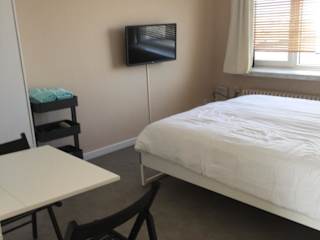Die Unterkunft verfügt über eine Küchenzeile mit Kühlschrank und Mikrowelle, jedoch sind keine Informationen zu weiteren Verpflegungsmöglichkeiten vorhanden.