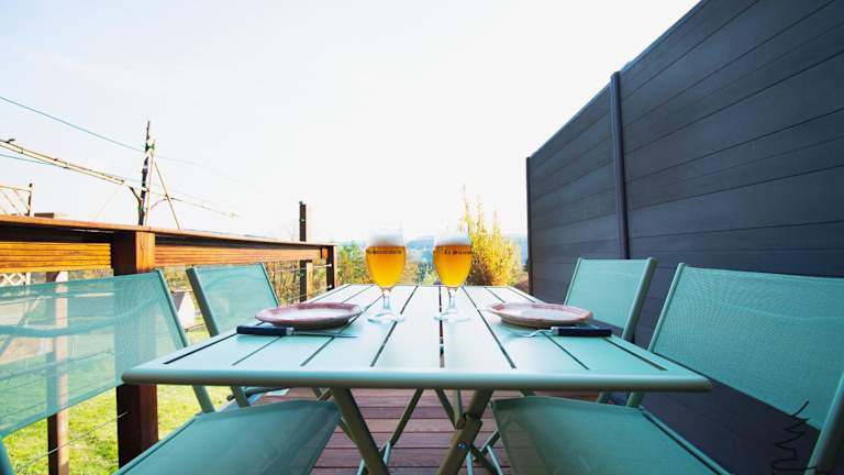 Das Ferienhaus bietet eine Terrasse sowie ein Schlafzimmer und ein Wohnzimmer. Zur Ausstattung gehören ein Flachbild-TV, eine gut ausgestattete Küche mit Kühlschrank und Geschirrspüler sowie ein Badezimmer mit Dusche. Handtücher und Bettwäsche werden ebenfalls bereitgestellt.