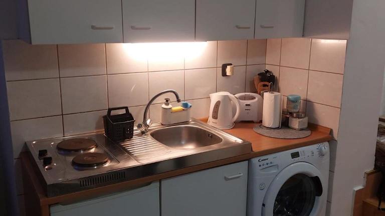 Das Studio KID bietet ein gemütliches Apartment mit einem Schlafzimmer und einem separaten Wohnzimmer. Die voll ausgestattete Küchenzeile verfügt über einen Kühlschrank und einen Wasserkocher. Das Badezimmer ist mit einer Badewanne oder Dusche und einem Haartrockner ausgestattet. Handtücher und Bettwäsche werden gestellt, um Ihren Aufenthalt so angenehm wie möglich zu gestalten.