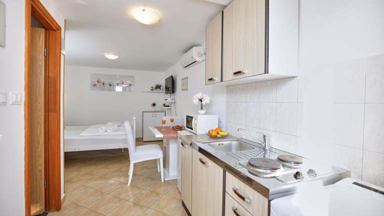 Das Studio Kristic ist ein gemütliches Studio mit Terrasse und bietet eine angenehme Übernachtungsmöglichkeit in einer ruhigen Umgebung. Die Unterkunft wird von einem privaten Gastgeber betrieben und legt Wert auf Nichtraucherfreundlichkeit sowie eine ruhige Atmosphäre. Es sind keine Junggesellen-/Junggesellinnenabschiede oder ähnliche Feiern erlaubt.