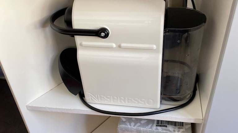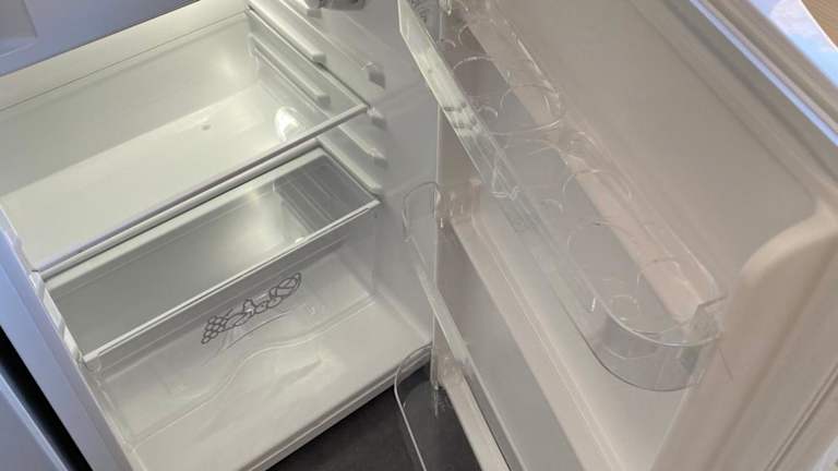 Die Ferienwohnung verfügt über eine Küchenzeile mit Kühlschrank, Herdplatte, Kaffeemaschine und Wasserkocher.