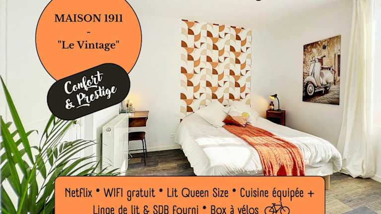 Das Studio LE VINTAGE - Maison 1911 - confort & prestige bietet ein gemütliches Schlafzimmer und eine gut ausgestattete Küche mit einem Kühlschrank und einem Geschirrspüler. Eine Waschmaschine steht ebenfalls zur Verfügung. Das Badezimmer ist mit kostenfreien Pflegeprodukten und einem Haartrockner ausgestattet. Das Apartment verfügt auch über einen TV. Das historische Gebäude aus dem Jahr 1911 verleiht dem Studio einen besonderen Charme.