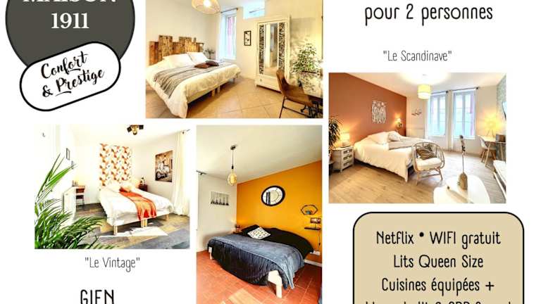 Das Studio LE VINTAGE - Maison 1911 - confort & prestige ist eine charmante und komfortable Unterkunft in Gien. Das Apartment befindet sich in einem historischen Gebäude aus dem Jahr 1911 und bietet kostenfreies WLAN sowie eine Terrasse. Mit einer erstklassigen Lage in der Nähe von Sehenswürdigkeiten wie dem Chateau de Gien und dem Chateau de Sully-sur-Loire ist dieses Studio der perfekte Ausgangspunkt, um die Region zu erkunden. Die gut ausgestattete Küche und das gemütliche Schlafzimmer sorgen für einen angenehmen Aufenthalt.