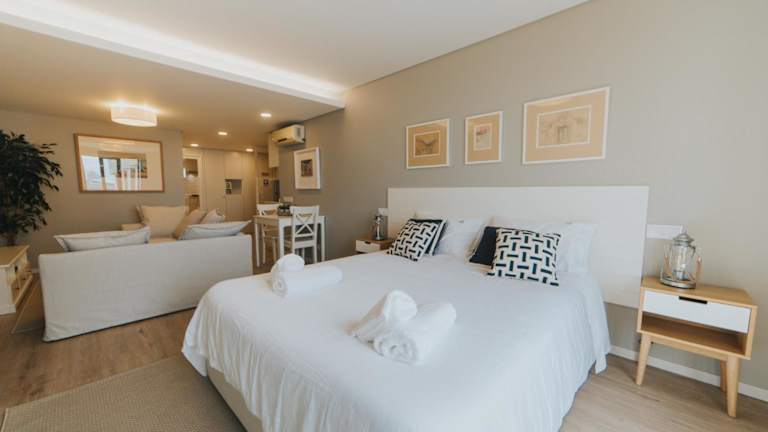 Die Wohnung verfügt über 1 Schlafzimmer, ein Wohnzimmer, eine voll ausgestattete Küche mit Kühlschrank und Kaffeemaschine sowie ein Badezimmer mit Dusche und Haartrockner. Ausstattung umfasst zudem einen Flachbild-TV mit Kabelkanälen und einen Blu-ray-Player.